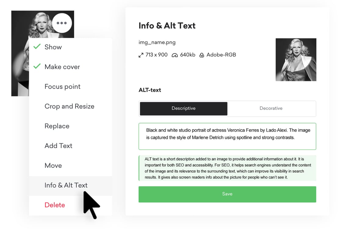 Generate automatically ALT-text for images for better SEO using AI-powered image recognition.